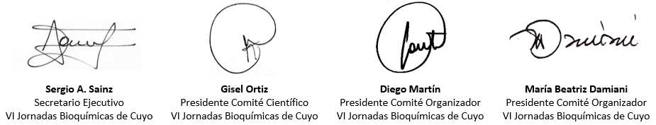 Tenemos el agrado de brindarles una cordial bienvenida, en nombre del Comité Organizador del VI Jornadas Bioquímicas de Cuyo, organizadas en conjunto por la Asociación Bioquímica de Mendoza y la Asociación Bioquímica de San Rafael, con sede en el Centro de Convenciones de San Rafael, Mendoza, a realizarse del 06 al 09 de mayo 2026, con el objeto de invitarles a participar activamente.